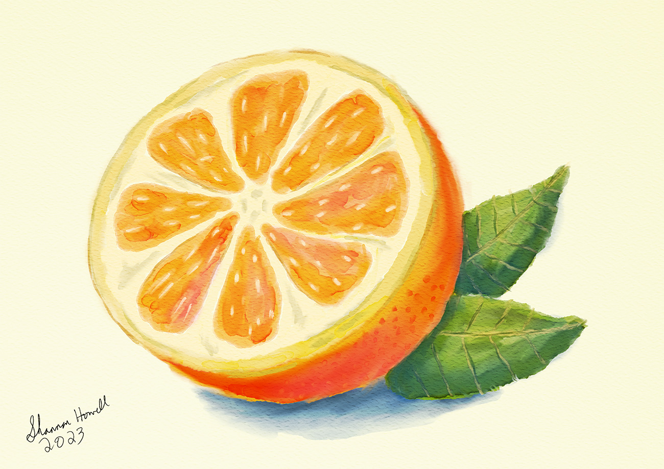 This is my first attempt at painting an orange using watercolor techniques. Thanks for taking a look at my work and God Bless!
