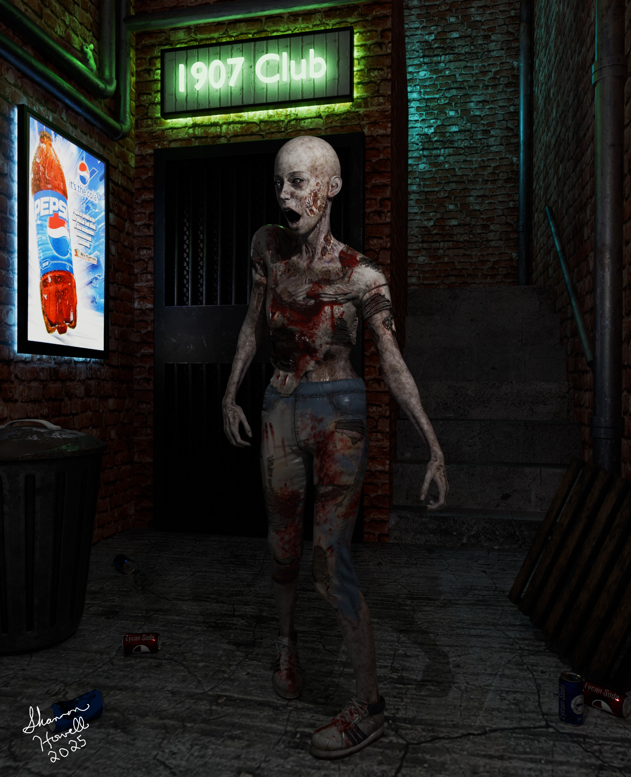 The 1907 Club - My second piece for Halloween 2025. I like how the lighting came out on this one for the club sign and overall. Time to start on the 3rd piece. Thanks for taking a look and God Bless!