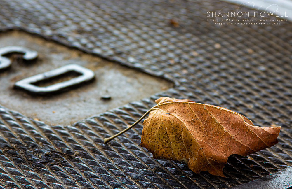 One day when we were having some pretty severe storms, I found this guy all by himself. The wind had been up all day and it finally died down a little I ran out to my garage and while all the other leaves had been blown away, this one leaf was still on the grate.
